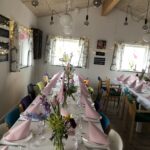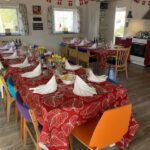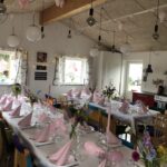 Huset rummer max 30 personer. Der er 26 stole + 8 klapstole. Der er borde i forskellig størrelse, som man kan sætte op som man har lyst til. Der er en skifteplads på toilettet.